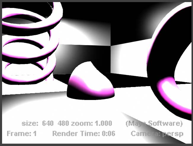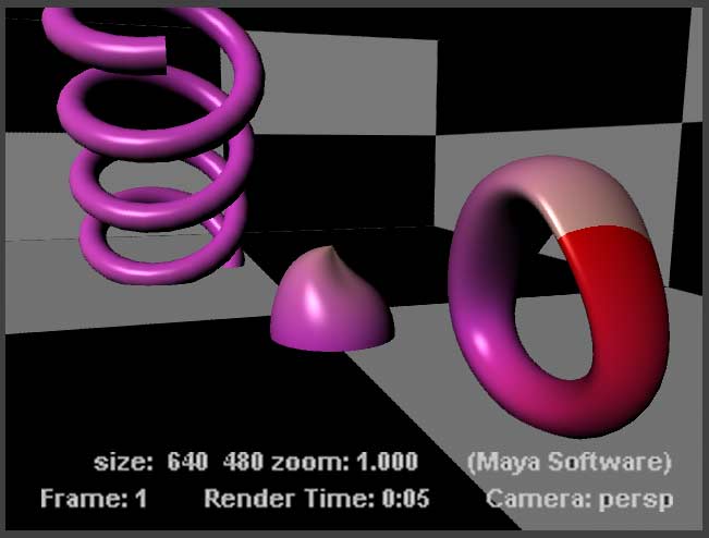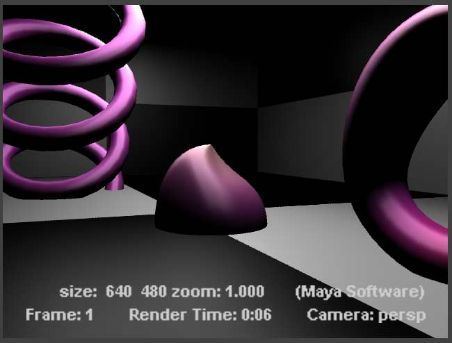 In the Render View window switch back to the Maya software renderer and click the render button again. This is what you'll get: |