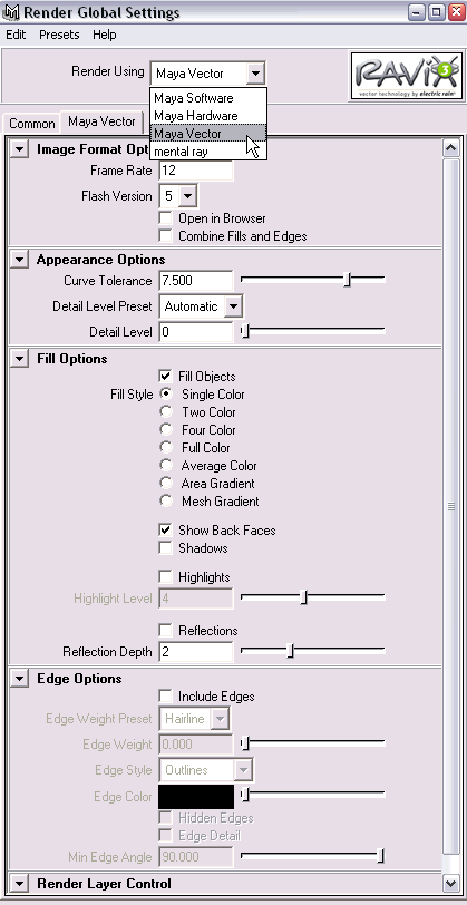 RAViX's Vector Renderer in Maya - Attribute Editor