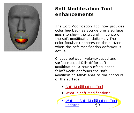 Hier zeigt der kurze, aber informative Flash-Film, wie man das Soft Modification-Werkzeug interaktiv benutzt. Der Film enthält keinen Ton. Alle Beschreibungen sind in Englisch. |