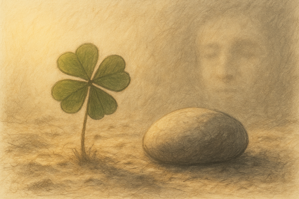 When I wear your clover And you my stone, We run together, hand in hand, Through the forest without trees.