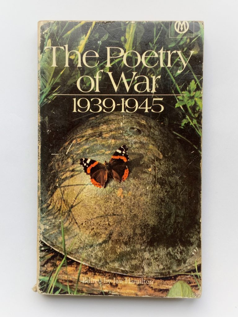 in den späten 1970er jahren spielte ich in einer jazz rock band in münchen. wir vier musik-affine jungs hatten keine ahnung. schon der name der band war ungeschickt improvisiert gewesen: peter silly band. ich spielte ein fender rhodes e-piano und sang. was sollte ich denn für texte singen? der freund und kollege thomas palzer lieferte einige, und dann kaufte ich in london’s charing cross road das oben abgebildete buch. es war 1972 erschienen und versammelte gedichte über den zweiten weltkrieg. auch wenn ich vieles nicht verstand, ich verstand den grundton der texte und nahm einige davon in die band mit. dass ich sie dann auch noch sang, hört sich heute nicht gut an. die musik war untight gespielt, was uns damals nicht auffiel. jetzt auch noch texte, durch die ich gesangsmäßig durchstolperte. und von copyright hatten wir eh keine ahnung.