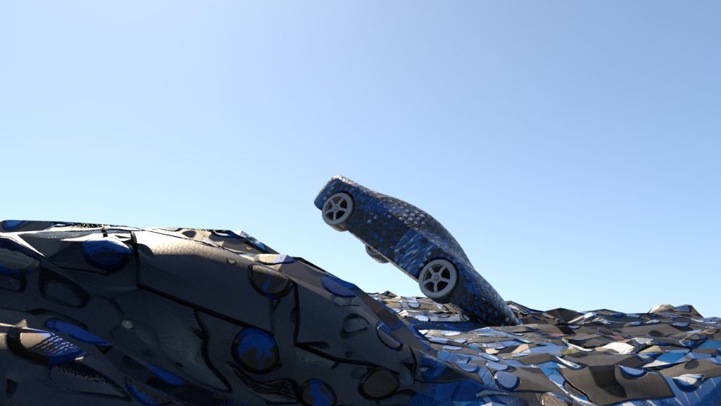 with the nvidia RTX 2070. ten times faster than CPU rendering of the same scene.