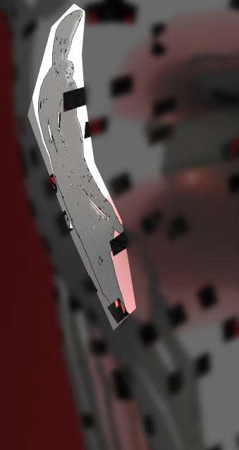 below you see a detail from the torso front of the runner where another runner in the scene appears as a cartoonish reflection. i modeled the holes in the character with mainframe north’s plug-in for maya → prosets.