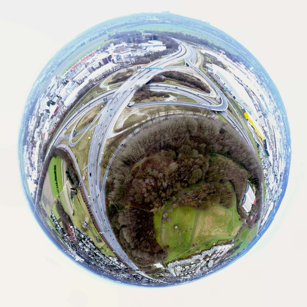 das erste einzelbild ist ein tatsächliches 360° panorama. wenn man nach oben guckt, sieht man die drohne, unten den park, den sportplatz etc. wer köln kennt, sieht den dom, das unicenter, den deutschlandfunk etc. ich habe das foto aus final cut pro X am mac als einzelbild exportiert. die beiden fotos darunter sind einfach screenshots aus der theta-app.
