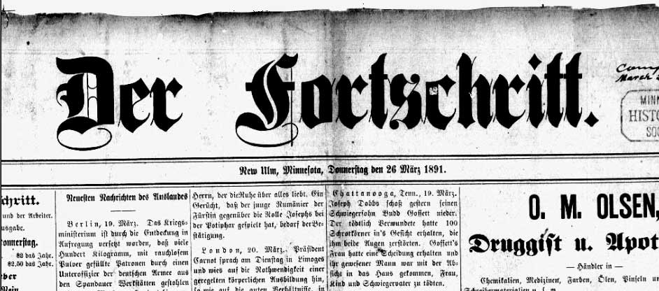 der fortschritt aus neu-ulm | minnesota 1891 28. November 2015 von maximilian erstausgabe „der fortschritt“, farmer- und arbeiterzeitung. 26. märz 1891