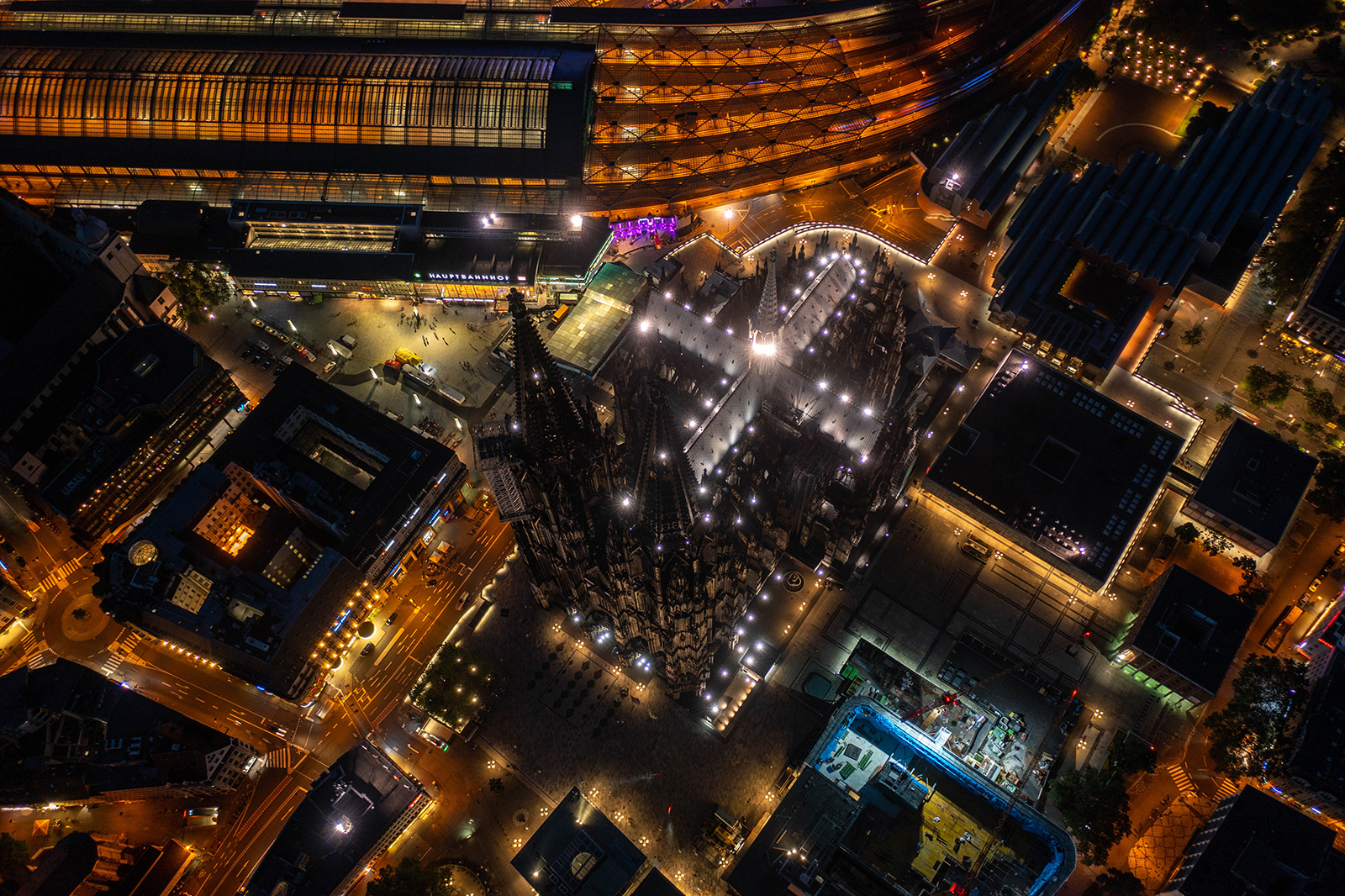 wie oft flog ich mit eurowings oder ryanair von münchen oder london zurück nach köln und sah dabei den rhein und den dom. seit der neuen EU-drohnenverordnung dürfen wir bei bestimmten voraussetzungen nun auch nachts fliegen. so konnte ich mir den dom gestern abend um halb 11 mal genauer von oben ansehen: