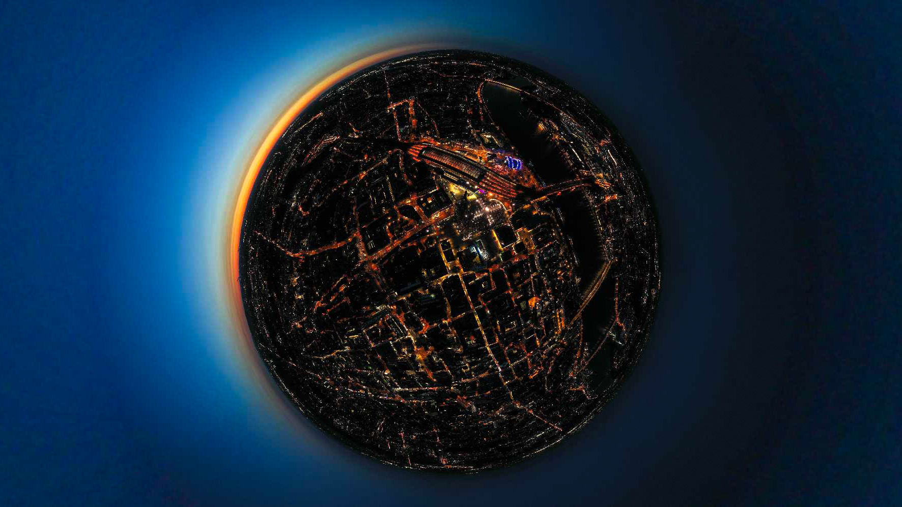 als 360°-panorama, welches die drohne innerhalb einer minute in form von 24 einzelbildern schoss und zusammenfügte, lassen sich fast beliebige blickwinkel realisieren, etwa diese → little planet-ansicht: