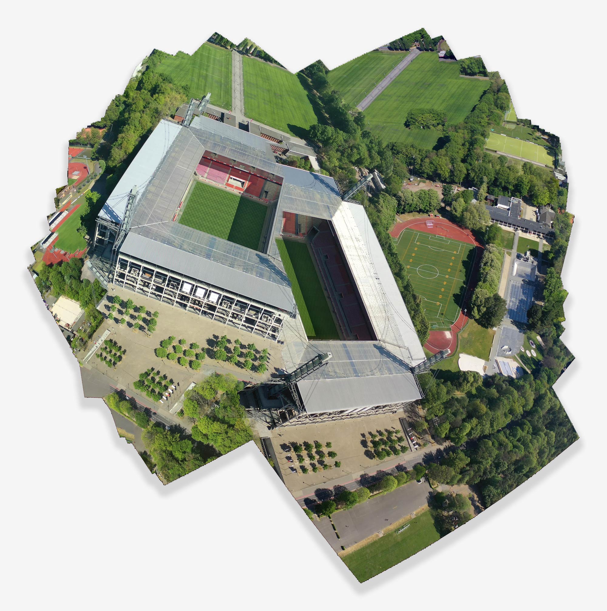 fc köln | kantig 24. April 2020 von maximilian panorama-software wie microsoft ICE kann aus videos panoramen erzeugen. dieses bild ist entstanden, indem ich eine halbumkreisung des rheinenergiestadions in die software einlas und sie eine viertelstunde nachdenken ließ. herrliches ergebnis: kantige berechnungsfehler