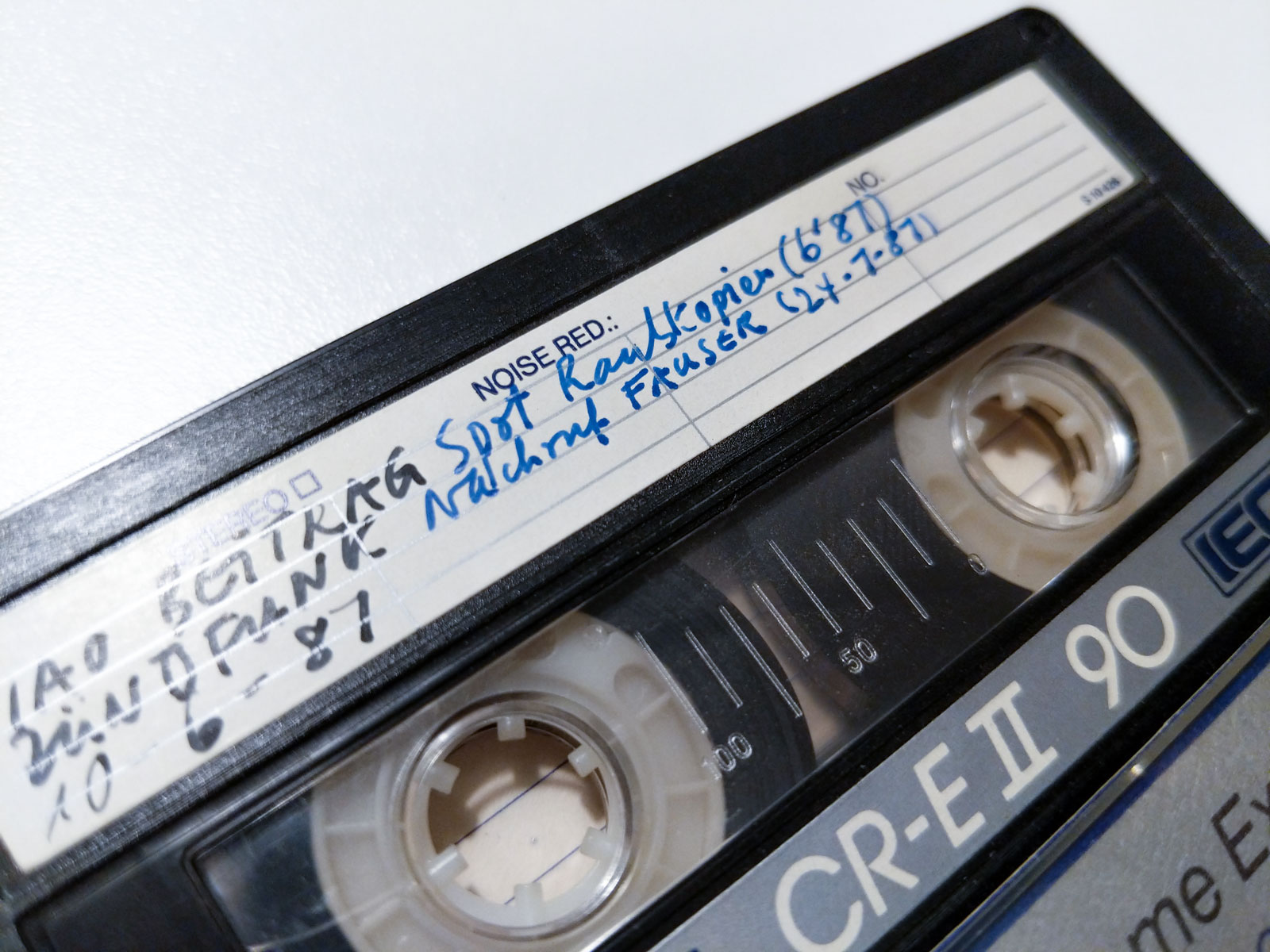 der schriftsteller → jörg fauser (heute wäre er 75 jahre alt geworden) war von wenigen gelitten, von uns im BR-zündfunk aber schon. ich habe eine → pop sunday-sendung mit ihm produziert, und als er im juli 1987 starb, traf uns das wie ein schock, und entsprechend klang vermutlich der nachruf. hier die cassette, mal eben aus meinem regal geholt. hab noch nicht reingehört: