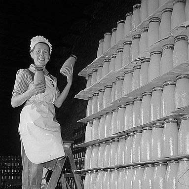 VEB leipziger feinkostfabrik mit unbeschrifteten marmeladengläsern. foto: rössing, 1953. deutsche fotothek