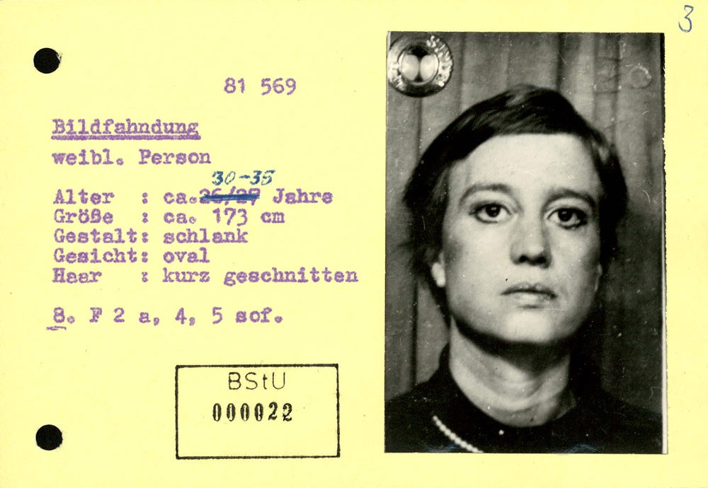 die journalistin ulrike meinhof und mit-gründerin der roten armee fraktion RAF fragte 1970 bei DDR-behörden in ost-berlin an, ob die RAF von DDR-seite aus operieren konnte. die DDR lehnte ab. um frau meinhof fürderhin von der nutzung des grenzübertritts in die DDR abzuhalten, wurde eine bildfahndung initiiert. dieses dokument findet sich bei der → stasi-unterlagen-behörde BStU.