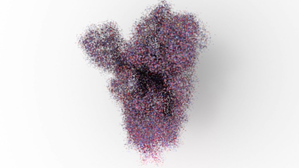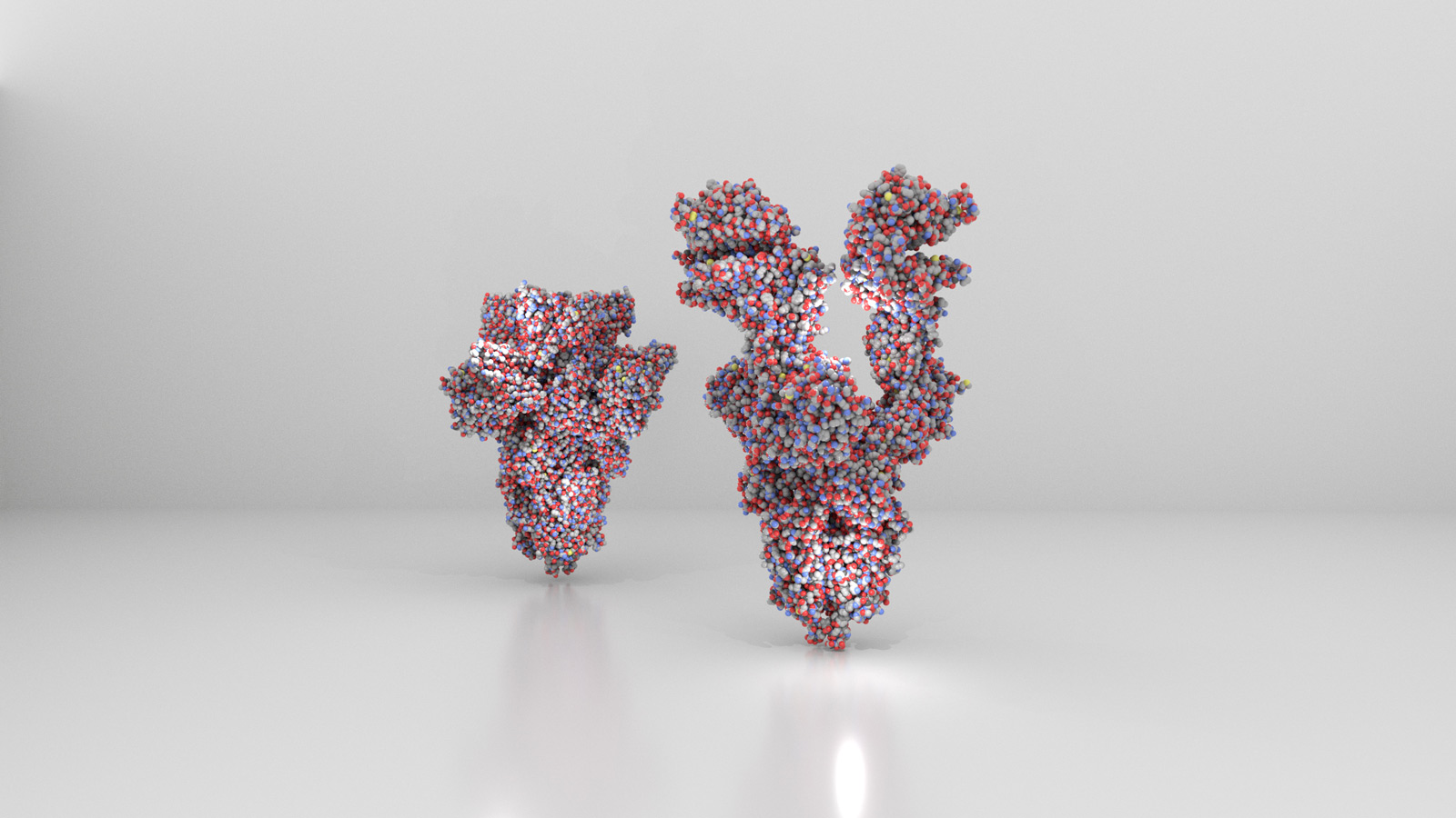the following rendering shows all atoms of the delta variant spike (left) and of the omicron variant.