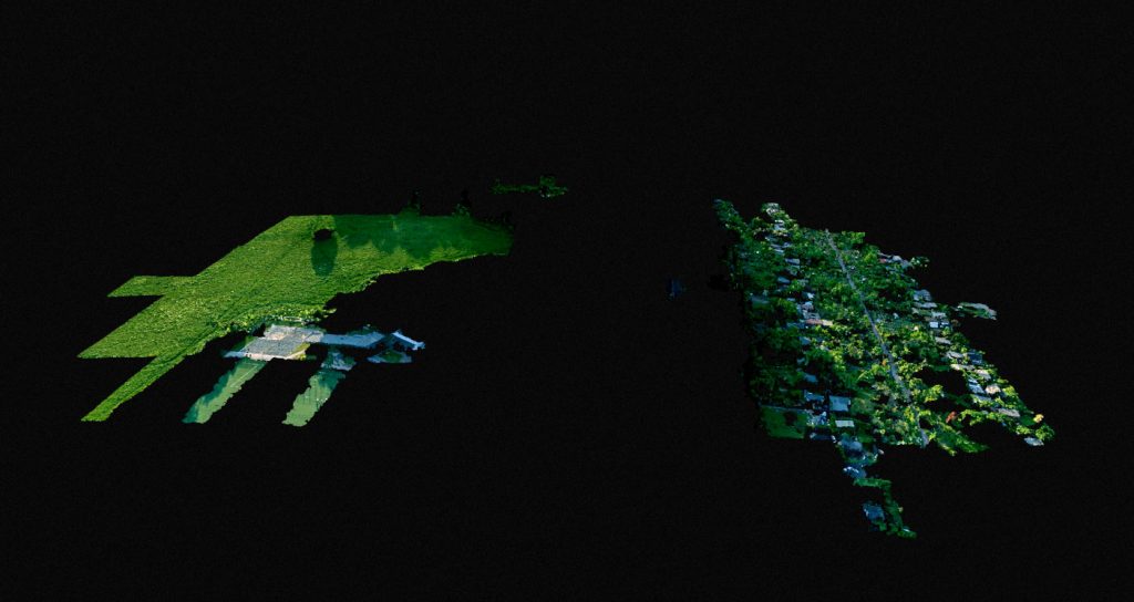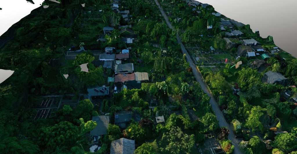 autodesk, a software giant, has a 2D to 3D tool in their portofolio. it’s called Recap, or, if you’re dealing with photographs: Recap Photo. the results below are from recap. they come with a much less information about the scene than pix4D, they’re not getting the full picture of my drone flight either, but they have nice visualisation options. below are two examples of my garden drone project, computed by recap.