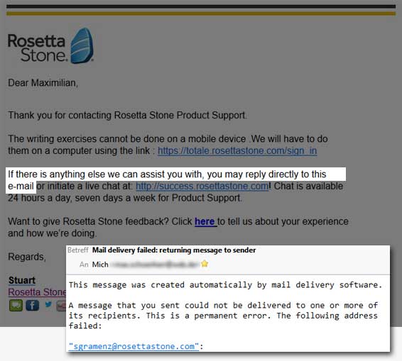 rosettaStone_supportFailiureauch der support ist wackelig: unzustellbare antwort von mir