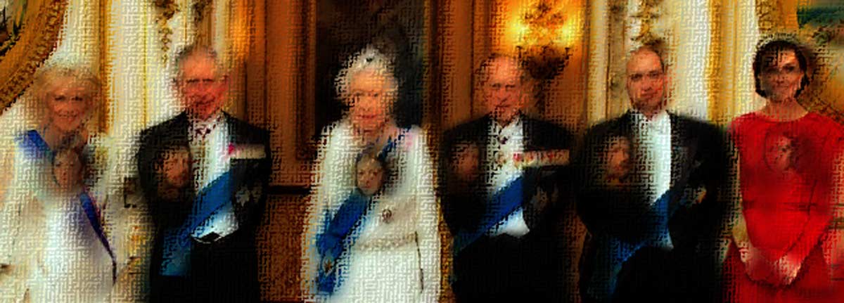 die queen kam wegen erkältung nicht zu weihnachts- und neujahrgottesdienst, ihr gatte schleppte sich immerhin in die christmette. das bild unten basiert auf dem weihnachtsfoto von reuters, reichlich digital angefixt. unter anderem habe ich sie alle gleich groß gemacht, denn es ist schwer zu ertragen, dss die queen gegenüber den anderen wie ein zwerg aussieht.