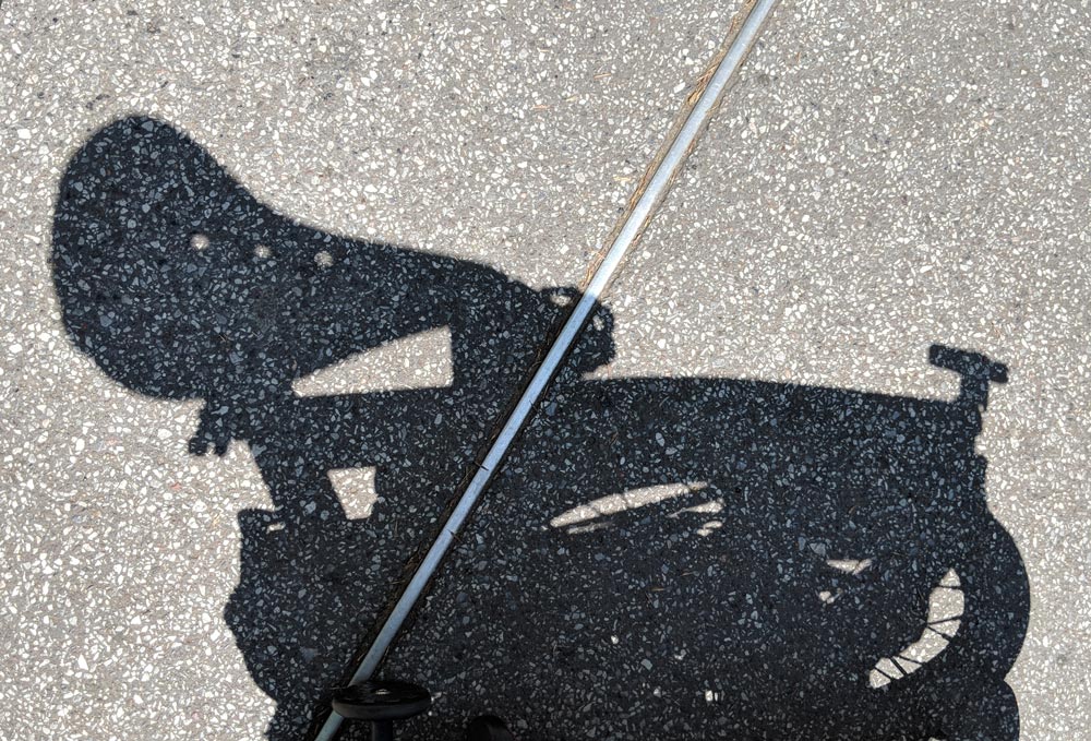 shadow of my B. with a B. saddle, obviously. waiting for the tram.