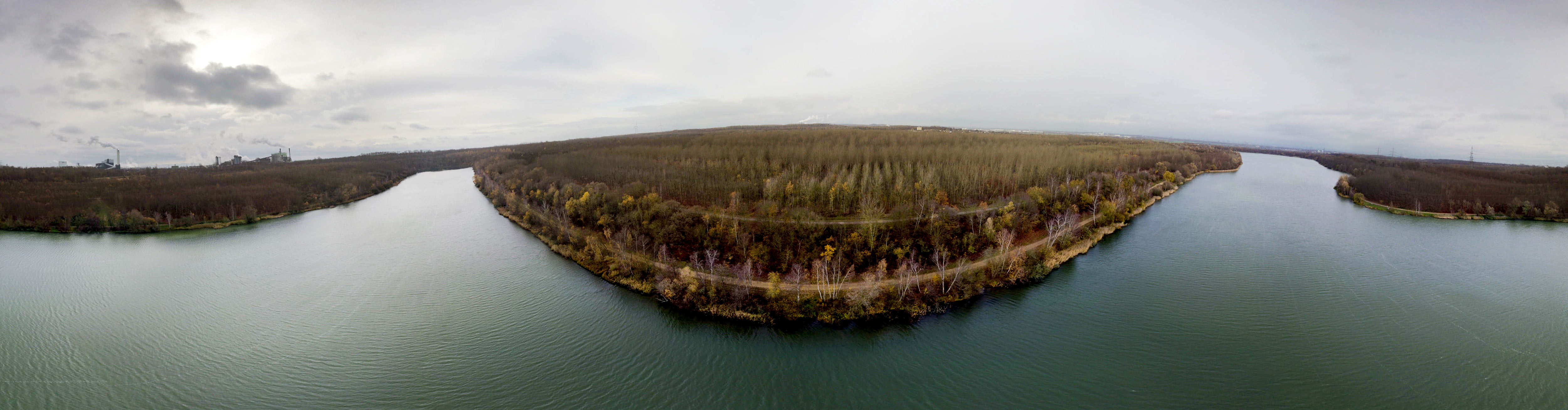 reiner zufall, dass der otto maigler see (westlich von köln) heute aus 50 metern höhe so traurig aussah. typische stereoskopische projektion, die zu dem „little planet“ effekt führt: