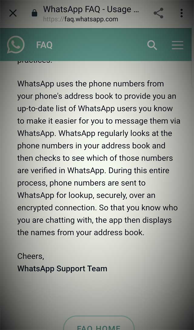 imagine someone (say, paul mcCartney) gives you a very personal email address and phone number and asks you to keep it confidential. as soon as you open whatsApp those data will autonomously leave your smartphone and land on some alien server where whatsApp will try to match them with other clients‘ data and instantly know, that person has 7 very close friends (ringo starr, yoko ono, madonna, tony blair, and of course mcCartney’s children and grandchildren). that’s highly unfair by you because you broke your promise to keep the data to yourself. that’s the reason i haven’t joined whatsApp. and that’s why it’s deeply unfair to tell a person who shares a secret number or email address with you, that you don’t care about whatsApp’s data policy, you have nothing to hide. wrong! you compromised your friend.